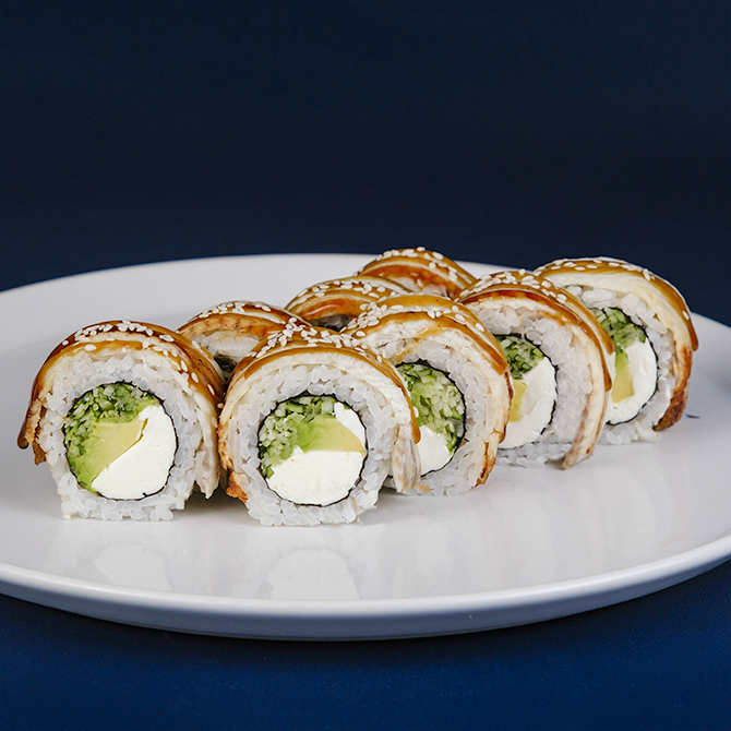 Вугор, Крем сир, Авокадо, Кунжут, Огірок, Соус унагі