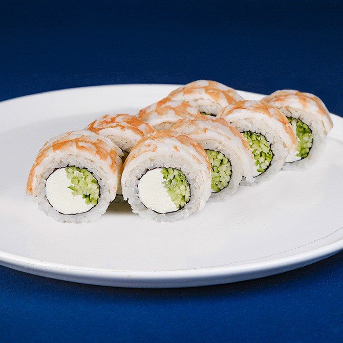 Тигрова креветка, крем сир Cremette, свіжий огірок, 8 шматочків