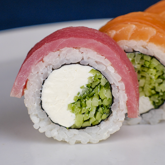 Тунець Еллоуфін, лосось с/с, крем сир Cremette, огірок свіжий, 8 шматочків