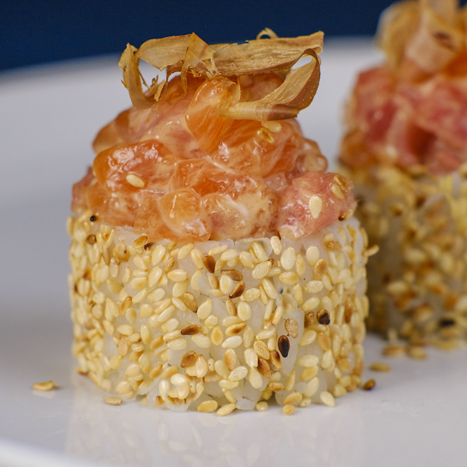 Фелікс в білому кунжуті з лососем та тунцем