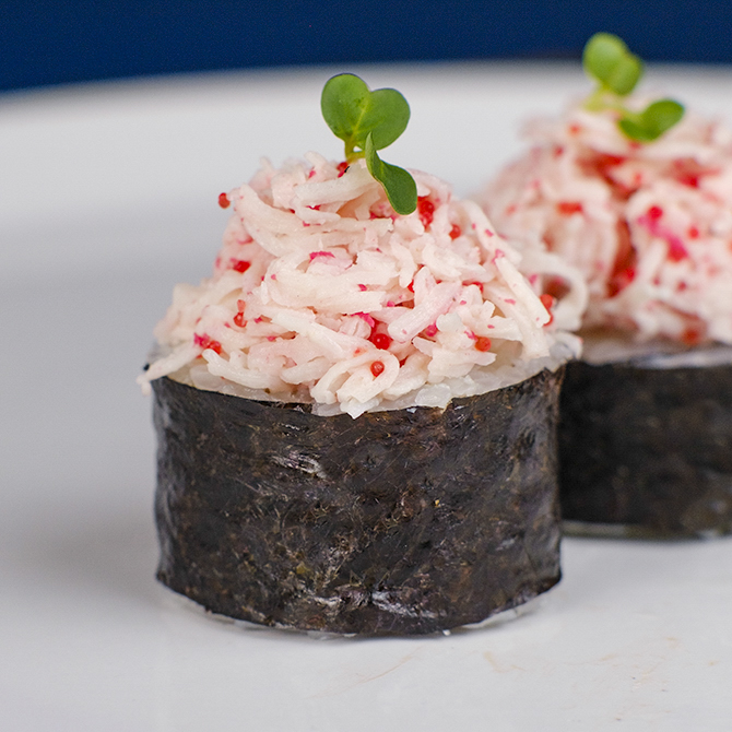 Рис, норі, сир Філадельфя, омлет томаго, огірок, лосось, манговий соус, ікра тобіка, редька такуан, мікрогрін редис, 8 шматочків