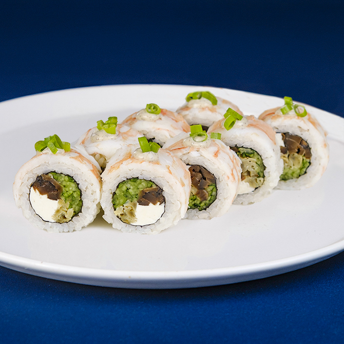 Рис, норі, крем сир Cremette, гриби шиїтаке, огірок, омлет томаго, креветка, трюфельна паста, зелена цибуля, 8 шт.