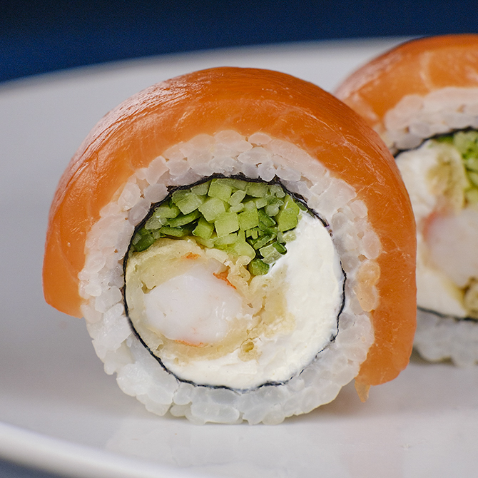 Рис, норі, креветка темпура, огірок, сир Cremette, лосось с/с, 8 шматочків