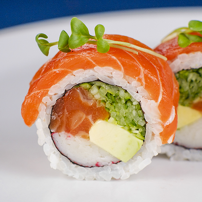 Лосось с/с, огірок свіжий, авокадо хас, сніжний краб, майонез японський, мікрогрін, 8 шматочків