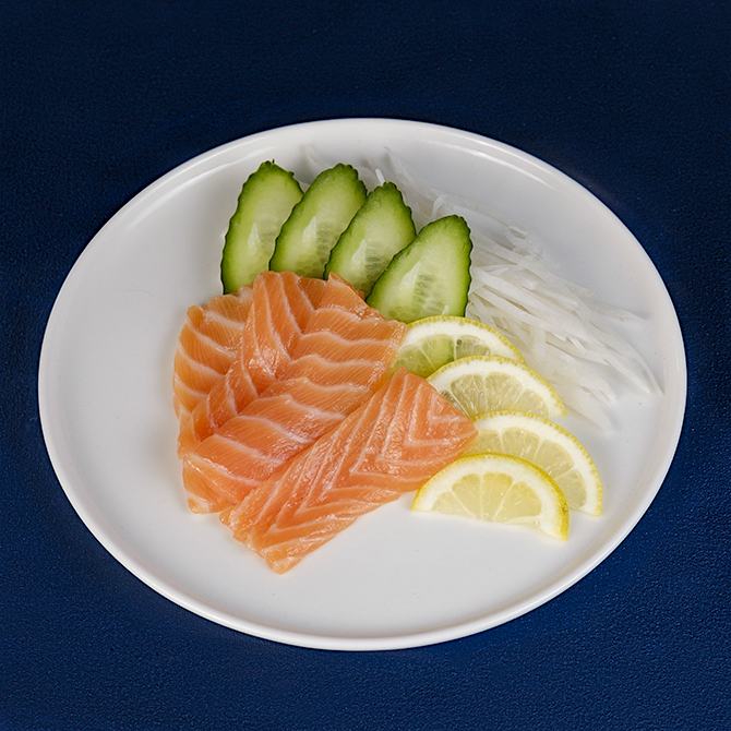 Лосось с/с, редіс дайкон, свіжий огірок, лимона.