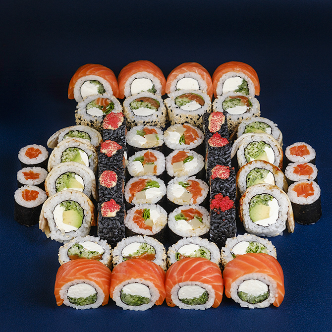 Філадельфія у лососі, Філадельфія у вугрі, Саторі, Сікоку, Фірмовий рол, Макі з лососем.