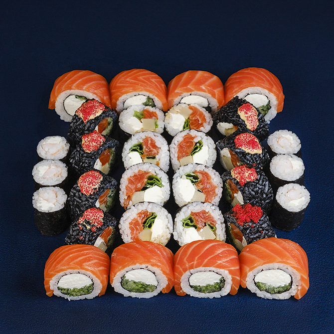 Саторі, Фірмовий рол, Філадельфія в лососі, Макі з креветкою та сиром