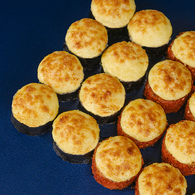 Запечений рол з норвезьким лососем с/с, Запечений рол з копченим сиром, лососем і тунцем, Запечений рол зі сніжним крабом