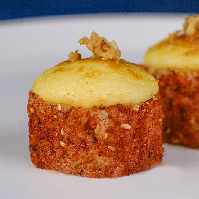 Рис, норі, копчений сир Cremette, шрірача, лосось, тунець, омлет Томаго, фурікаке, сир Гауда, японський майонез, смажена цибуля, 8 шматочків