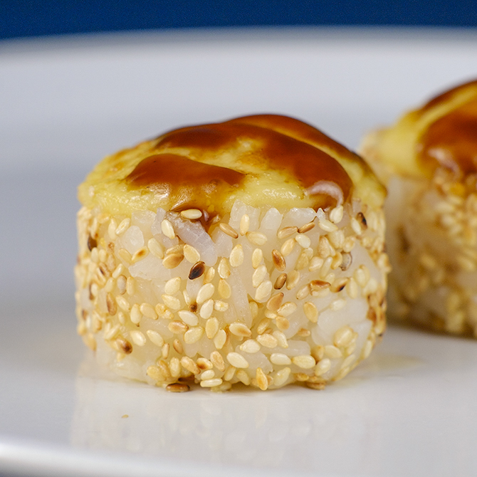 Мідії, Соус спайс, Крем сир, Сир гауда, Соус медовий, Огірок, Рис, Норі