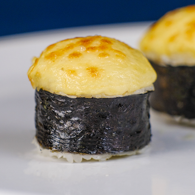 Рис, норі, крем сир Cremette, лосось с/с, омлет томаго, соус гостро-солодкий, сир гауда, 8 шматочків