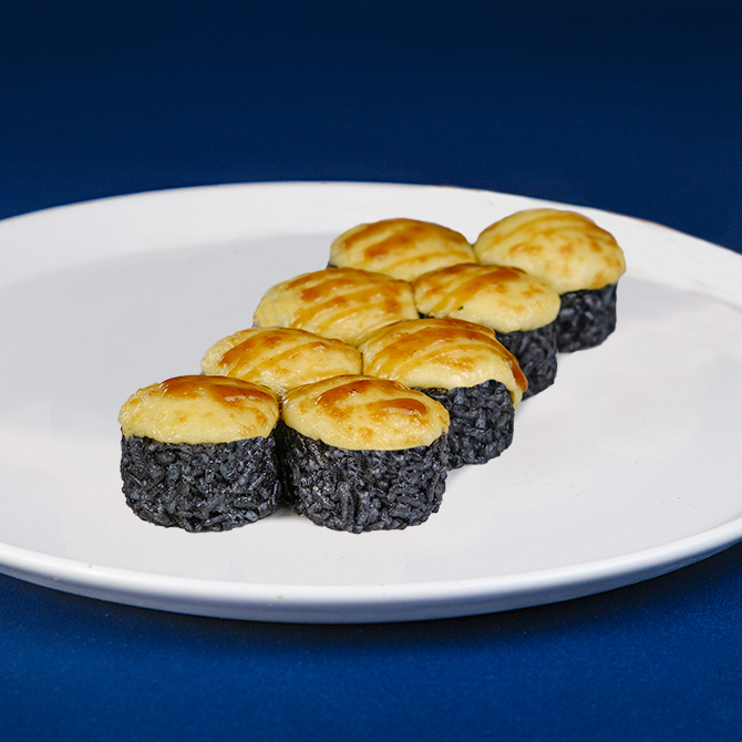 Вугор, крем сир Cremette, омлет томаго, сир гауда, соус спайс, соус унагі, чорнила каракатиці, 8 шматочків