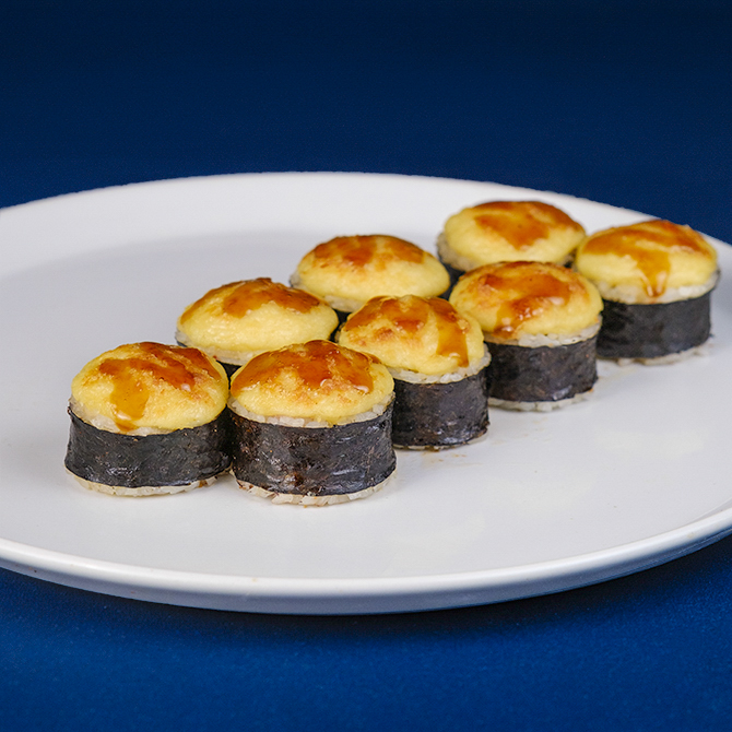 Сніжний краб, омлет томаго, крем сир Cremette, сир гауда, соус солодкий чилі, японський майонез, медовий соус, 8 шматочків
